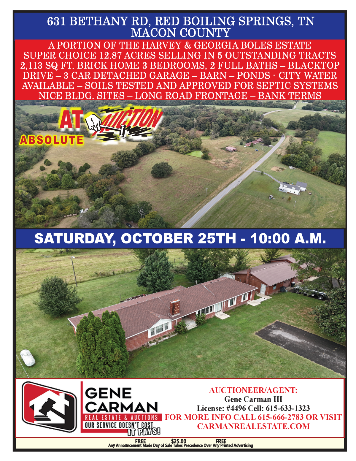 Auctioneer/Agent: Gene Carman III 615-633-1323