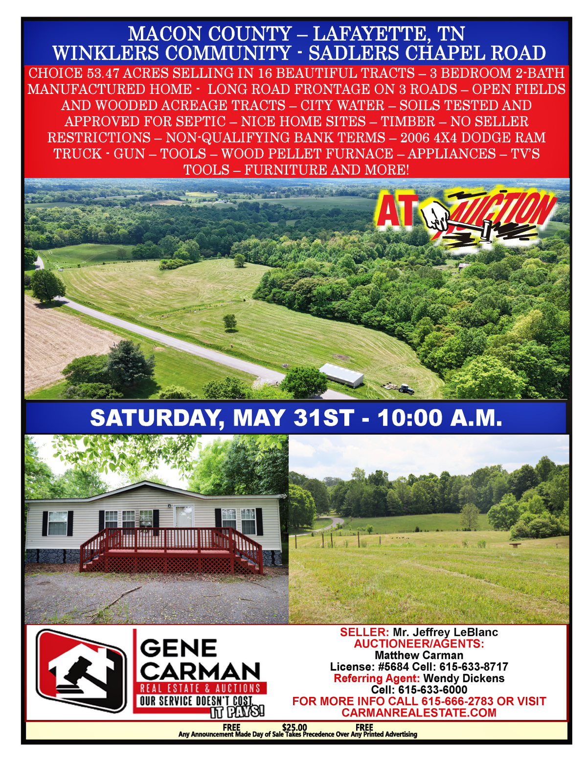 Gene Carman Real Estate & Auctions has been serving Middle TN and Southern KY with auctions since 1910 and private sales for over 60 years. We are now in our 5th generation of family who work in the real estate and auction business. Put generations of auction experience to work for you!